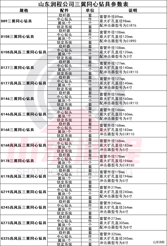 配套套管外径108mm,最大扩孔直径120mm,配合冲击器型号为CIR90或配3寸冲击器。