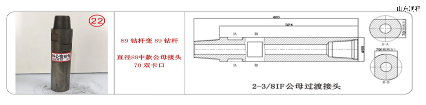 89钻杆变89钻杆,直径88短款公母接头双70卡口,2-3/8IF公母过渡接头。