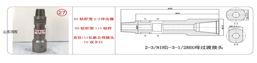 89钻杆变6寸冲击器,89钻杆变114钻杆,直径113长款公母接头70双卡口,2-3/8IF公-3-1/2REG母过渡接头。