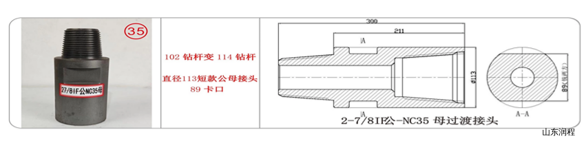 102钻杆变114钻杆,直径113短款公母接头89卡口,2-7/8IF公-3-1/2REG母过渡接头。