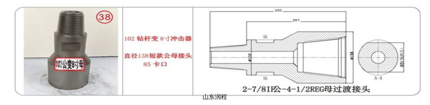 102钻杆变8寸冲击器,直径138短款公母接头85卡口,2-7/8IF公-4-1/2REG母过渡接头。