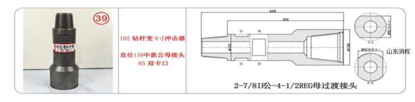 102钻杆变8寸冲击器,直径138中款公母接头85双卡口,2-7/8IF公-4-1/2REG母过渡接头。