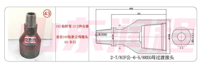 102钻杆变12寸冲击器,直径188短款公母接头85卡口,2-7/8IF公-6-5/8REG过渡接头。