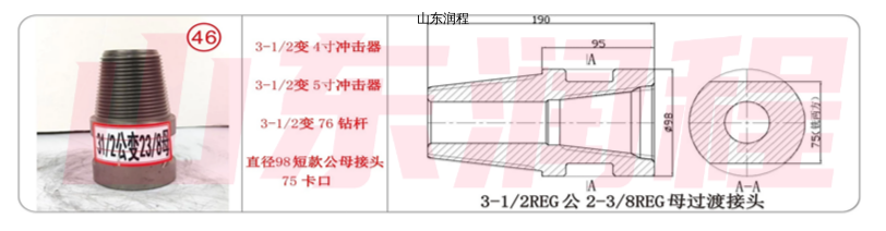3-1/2变4寸冲击器,3-1/2变5寸冲击器,3-1/2变76钻杆,直径98短款公母接头75卡口,3-1/2REG公-2-3/8REG母过渡接头。