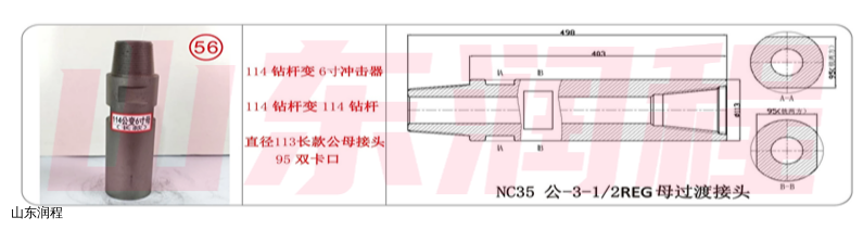 114钻杆变6寸冲击器,114钻杆变114钻杆,直径113长款公母接头95双卡口,NC35公-3-1/2REG母过渡接头。