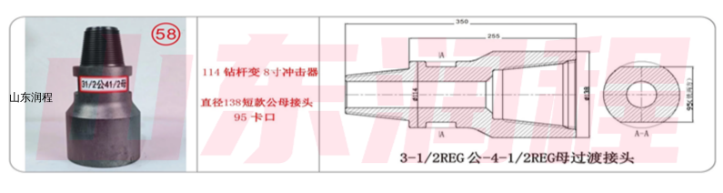 114钻杆变8寸冲击器,直径138短款公母接头95卡口,3-1/2REG公-4-1/2REG母过渡接头。