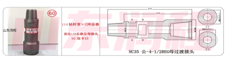 114钻杆变8寸冲击器,直径138长款公母接头95双卡口,NC35公-4-1/2REG母过渡接头。