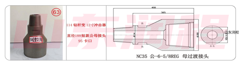 114钻杆变12寸冲击器,直径188短款公母接头95卡口,NC35公-6-5/8REG母过渡接头。