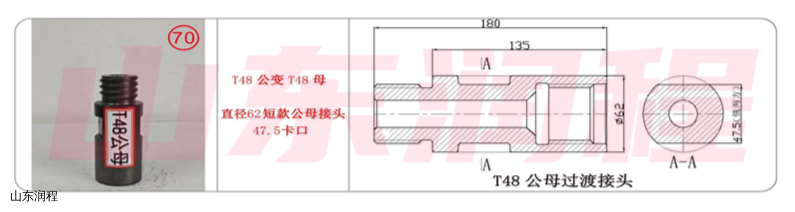 T48公变T48母,直径62短款公母接头47.5卡口,T48公母过渡接头。