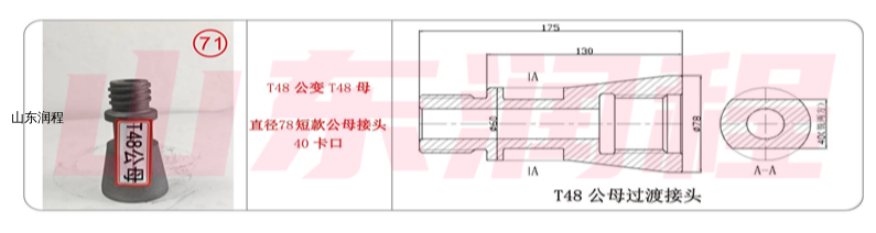 T48公变T48母,直径78短款公母接头40卡口,T48公母过渡接头。