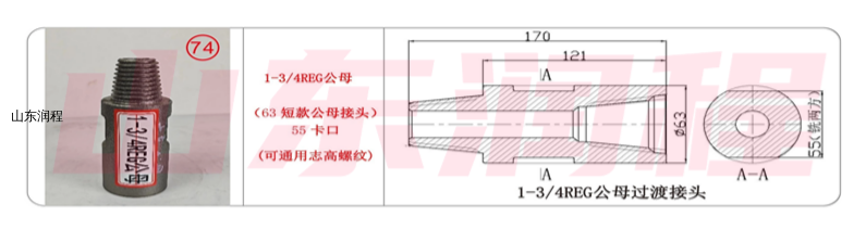 1-3/4REG公母,63短款公母接头55卡口,(可用于志高螺纹),1-3/4REG公母过渡接头。