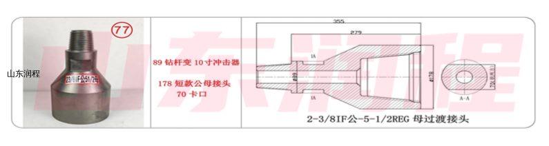89钻杆变10寸冲击器,178短款公母接头70卡口,2-3/8IF公-5-1/2REG母过渡接头。