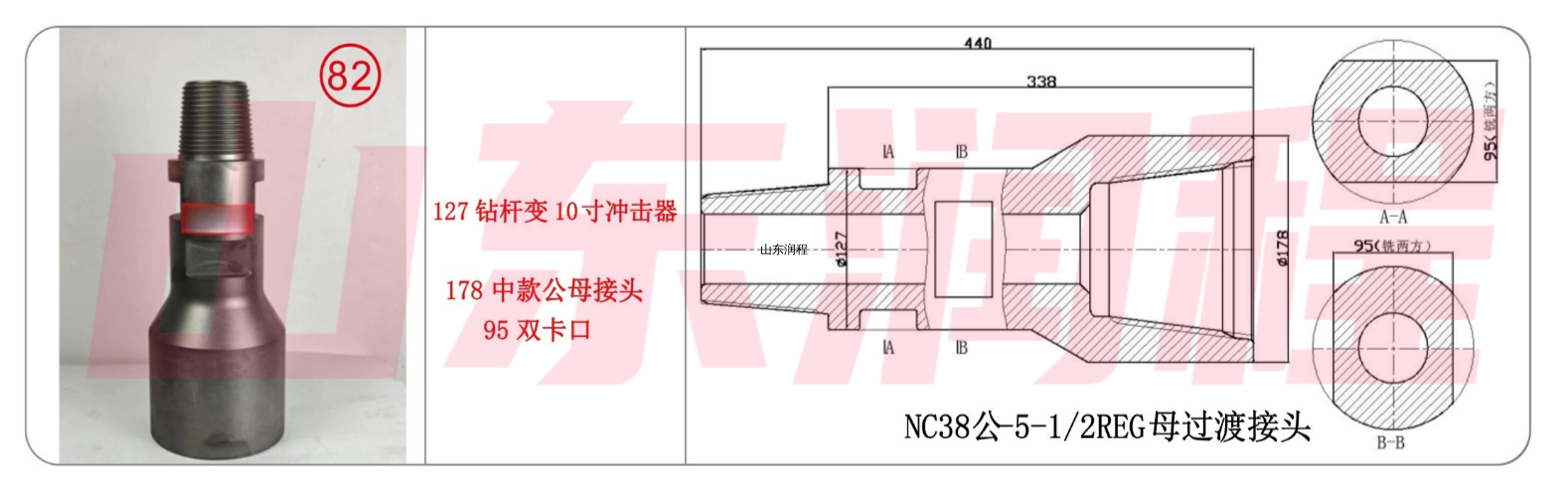 127钻杆变10寸冲击器,178中款公母接头95双卡口,NC38公-5-1/2REG母。