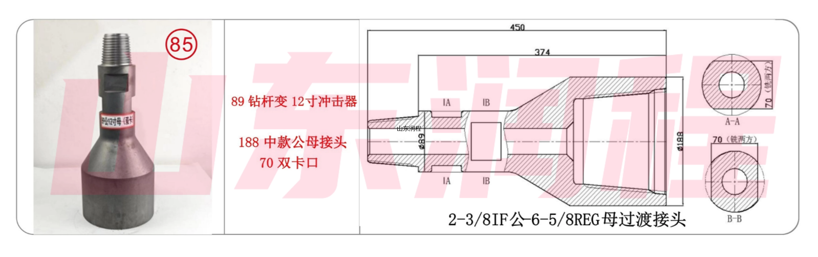 89钻杆变12寸冲击器,188中款公母接头70双卡口,2-3/8IF公-6-5/8REG母过渡接头。