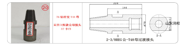 76钻杆变2NG母,直径78短款公母接头57卡口,2-3/8REG公-T48母过渡接头。