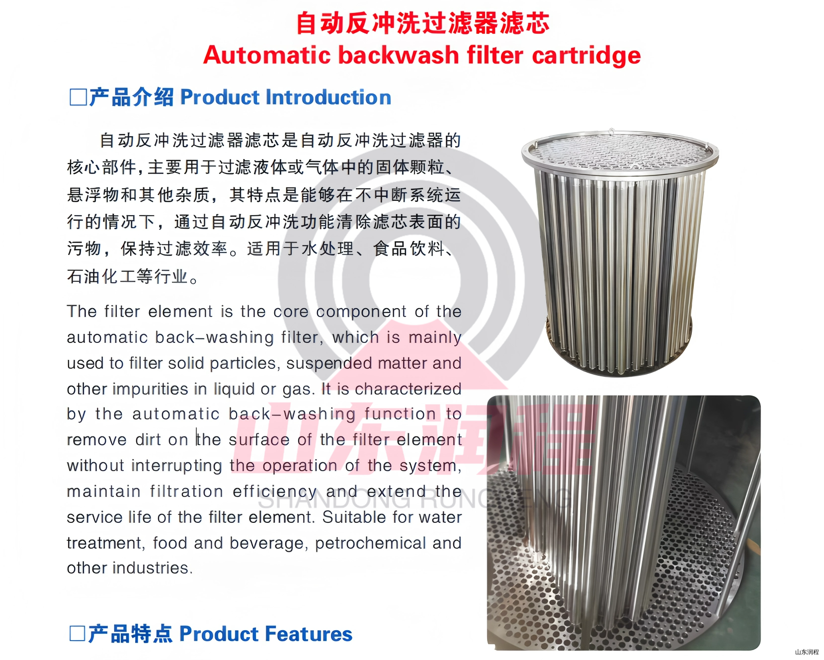 自动反冲洗过滤器滤芯是自动反冲洗过滤器的核心部件,主要用于过滤液体或气体中的固体颗粒、悬浮物和其他杂质,其特点是能够在不中断系统运行的情况下,通过自动反冲洗功能清除滤芯表面的污物,保持过滤效率。