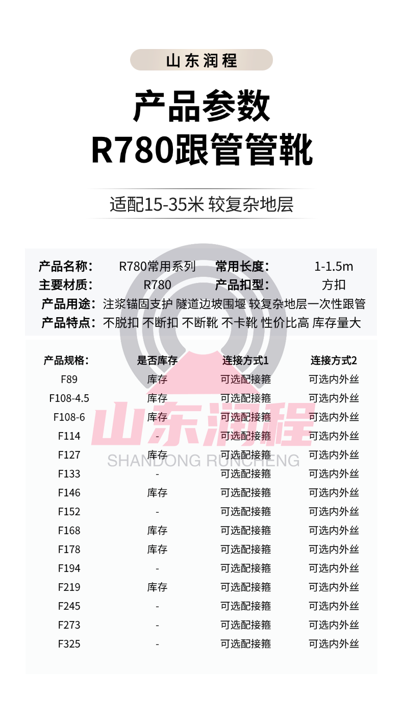 山东润程R780跟管管靴产品参数:适配15-35米较复杂地层