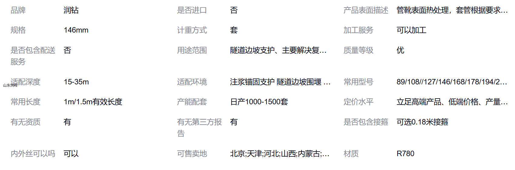 产品用途:注浆锚固支护隧道边坡围堰较复杂地层一次性跟管