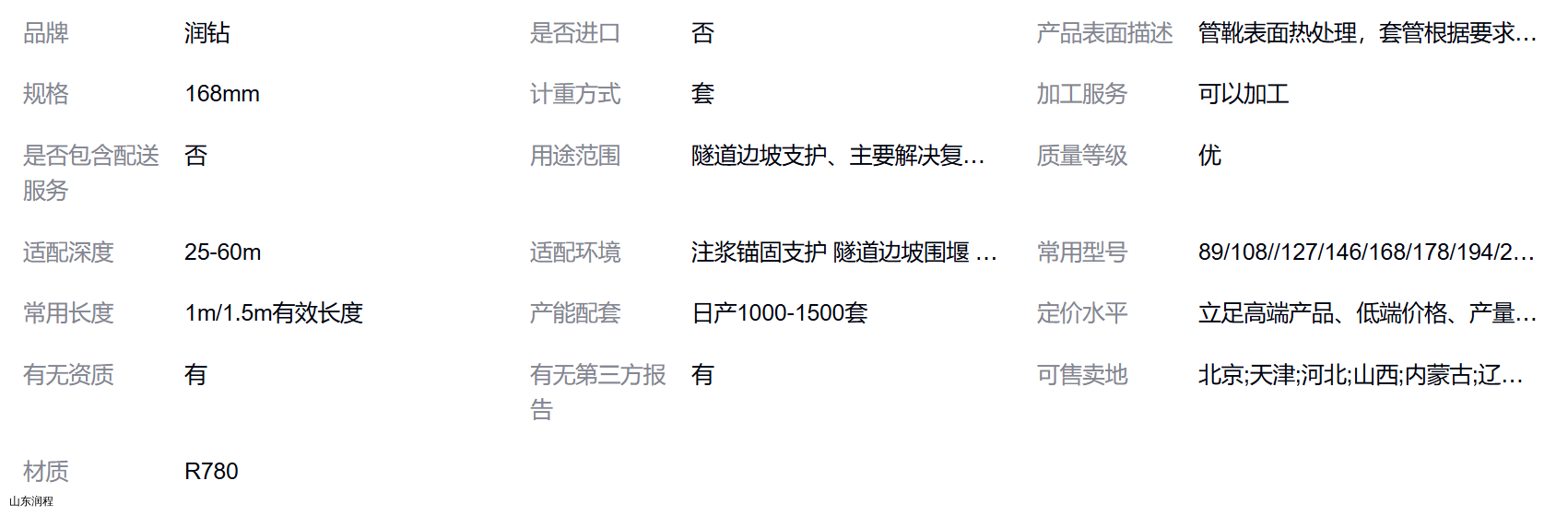 地质钻探领域35 - 60米中深孔作业存在卡钻、断扣、管靴断裂三大难题,山东润程金属材料有限公司专注R780高强度材料研发与应用,提供解决方案。其产品有独家热处理工艺、波纹扣抗疲劳设计、R780材料均质化控制等优势,采用全链智造满足多元需求。产品在高原铁路隧道等项目有应用案例。该公司承诺极速响应、全程护航,提供技术支持等服务,诚邀合作,共享共赢,提供免费试钻等支持。